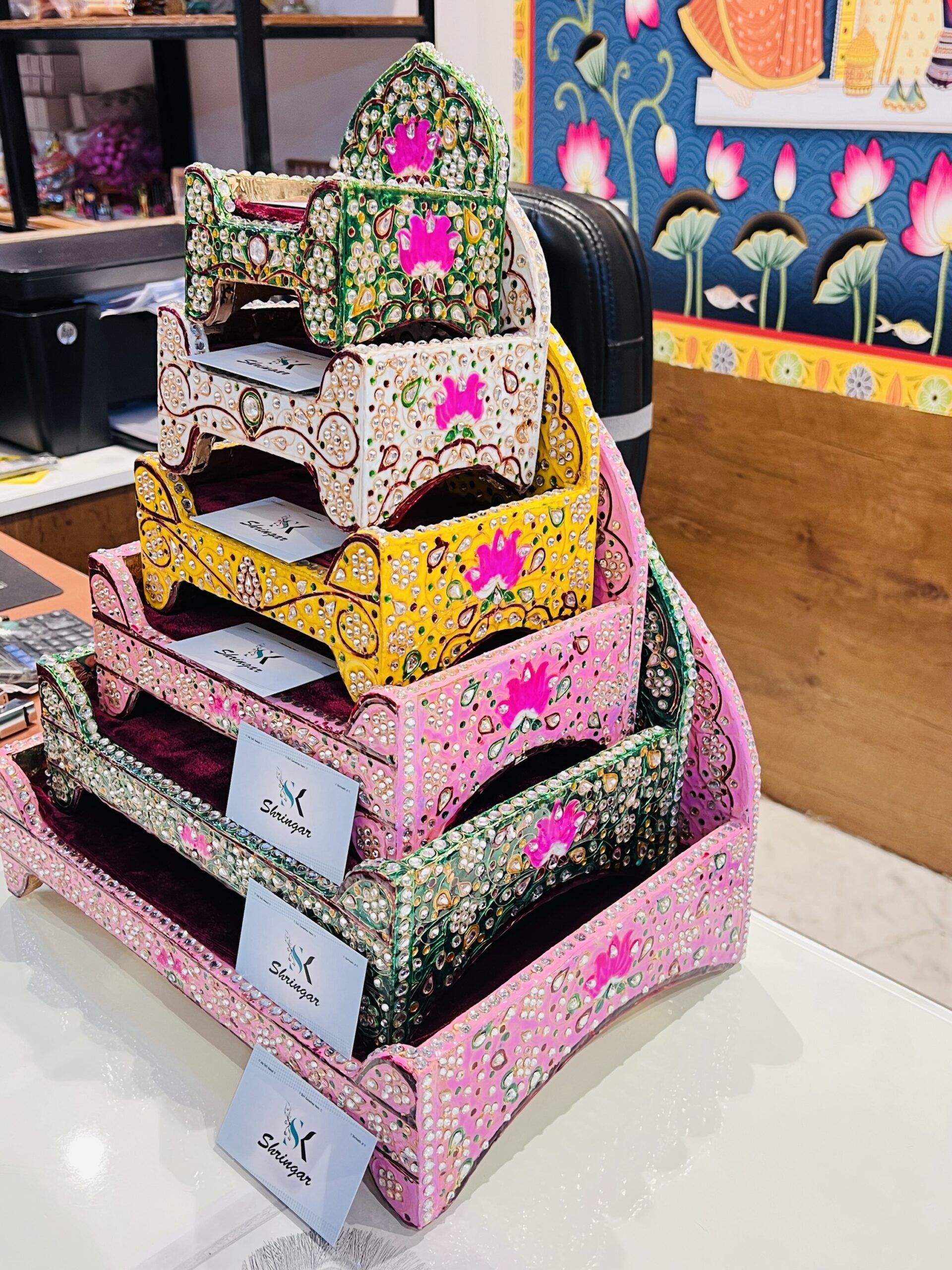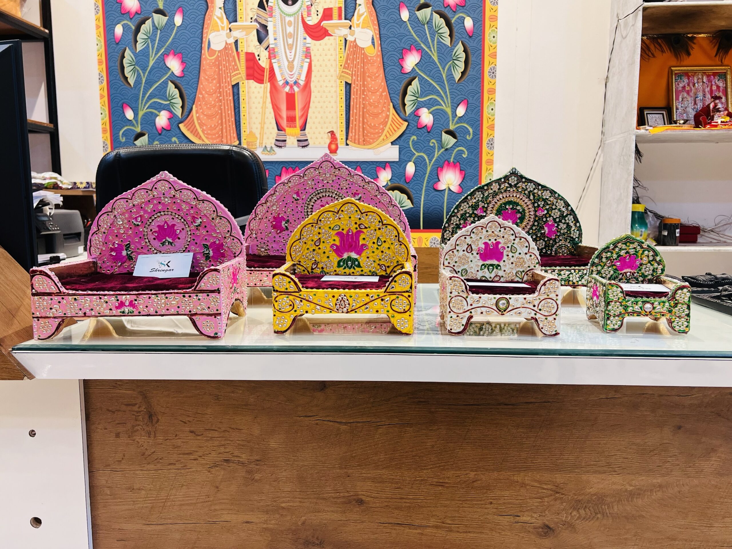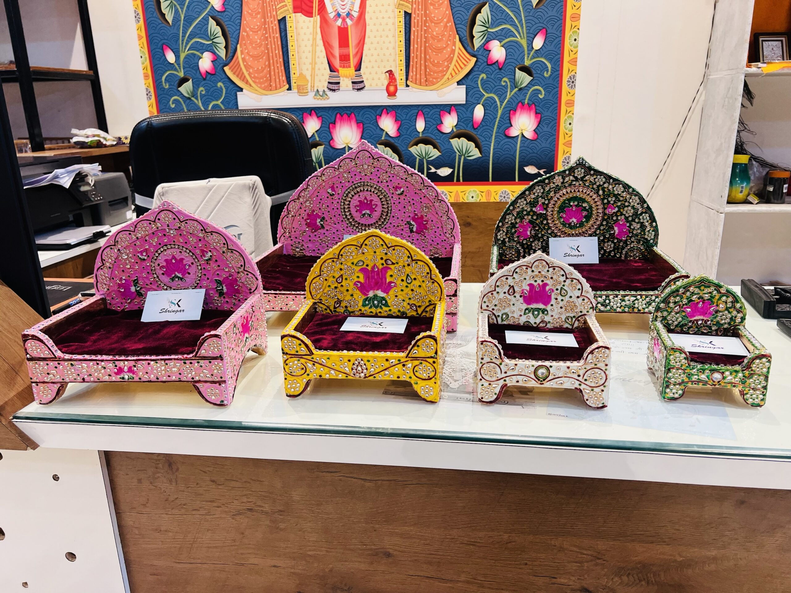 Meenakari Jadaau Sihasan based on wooden…. durable and Jadaau work is laminate so there will be no chance of stones coming out !!!!