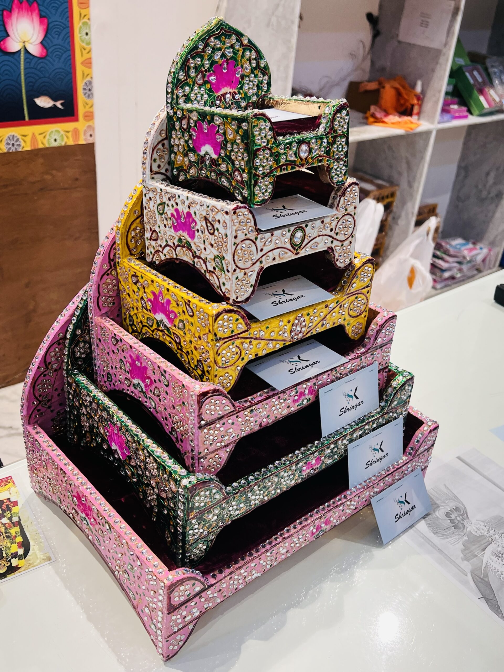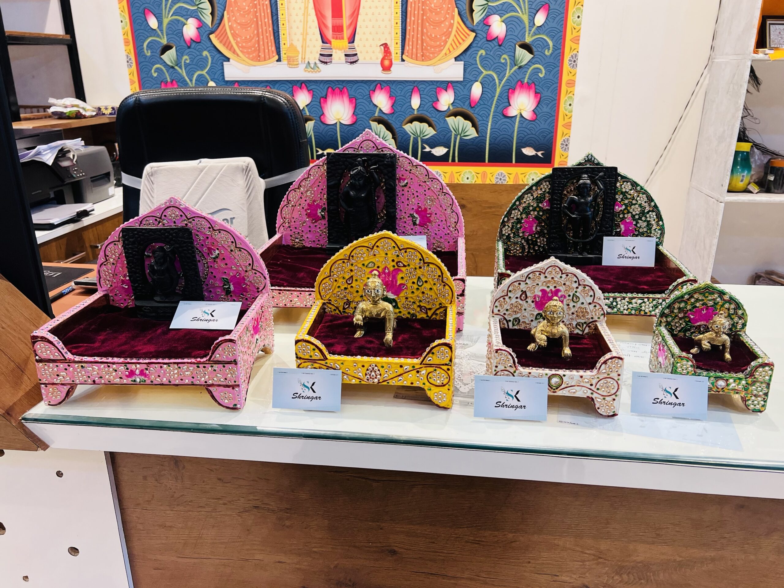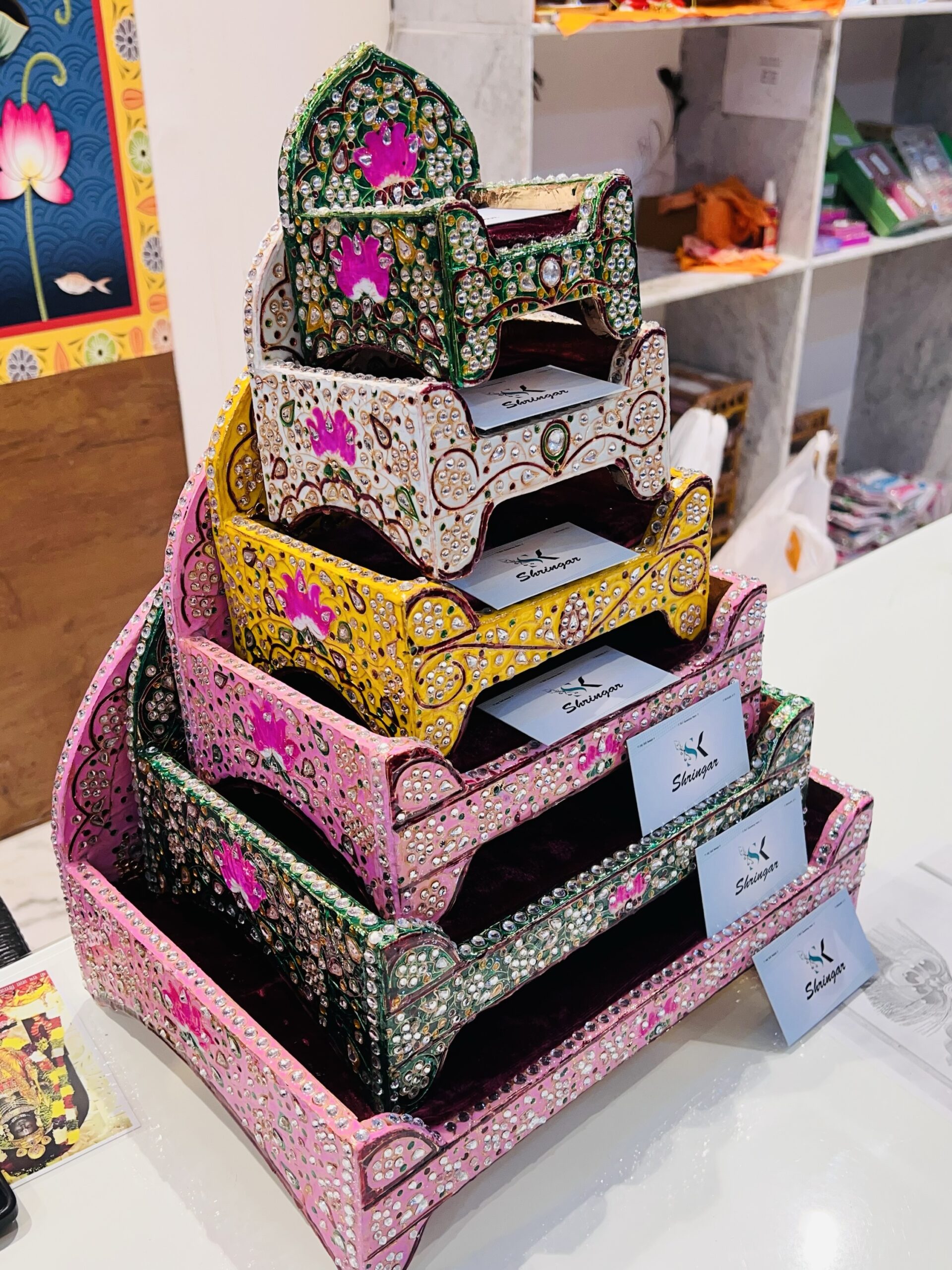 Meenakari Jadaau Sihasan based on wooden…. durable and Jadaau work is laminate so there will be no chance of stones coming out !!!!